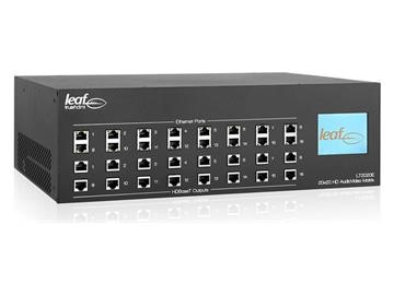 The Leaf 20x20 matrix switch is capable of distributing 20 HDMI (3D, Audio/Video) sources to 16 zones utilizing HDBaseT Technology. It also features 4 local HDMI outputs for in-rack or in-room end-points. In addition to HDMI, the LTHDMI2020E is also capable of distributing bi-directional RS232 & directional IR, Ethernet (10/100), and analog audio to any of the 16 zones. Stereo HDMI audio or digital audio (s/pdif) can be converted to analog and distributed via the pre-amped audio matrix switch to any zone throughout the system. Using HDBaseT as the medium, it requires a single Cat5e/Cat6 as the only cabling between the matrix and the zone with distances up to 328 feet (100 meters). It is also flexible enough to use the Leaf LTB1, LTB1E, LTBSR or LTB8 as room breakout units. The LTHDMI2020E is easy to set-up utilizing leafs auto-EDID calibration system and features Leaf’s unique zone lock technology.